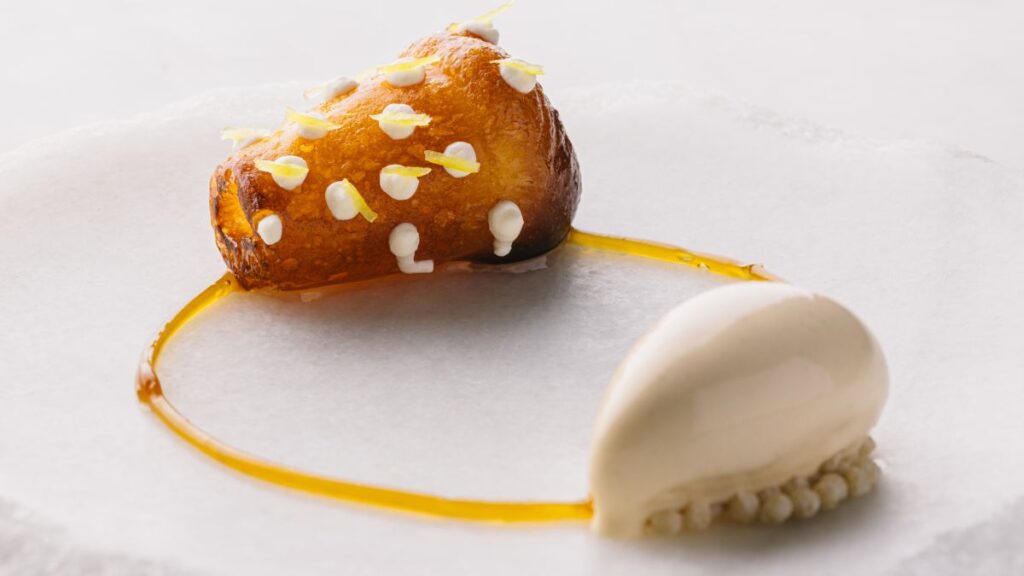 También ha incluido otras creaciones como las huevas de choco con sabayón de mantequilla quemada, el tartar de salmón salvaje con holandesa de yuzu y pimienta japonesa sansho y nashi (pera asiática) o el canelón de jabalí con salsa de curry rojo thai y shiitakes. Entre los postres, propuestas como la tarta tatin con helado de vainilla o el flan de leche de cabra con caramelo de melaza, con una original receta protagonizada por el chocolate.