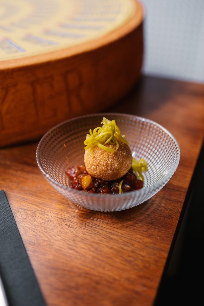 - Mariano Galangco Gadingan’s restaurant Miga Cana participates with a tapa of fried Le Gruyère AOP with creamy quince jelly and pistachio.