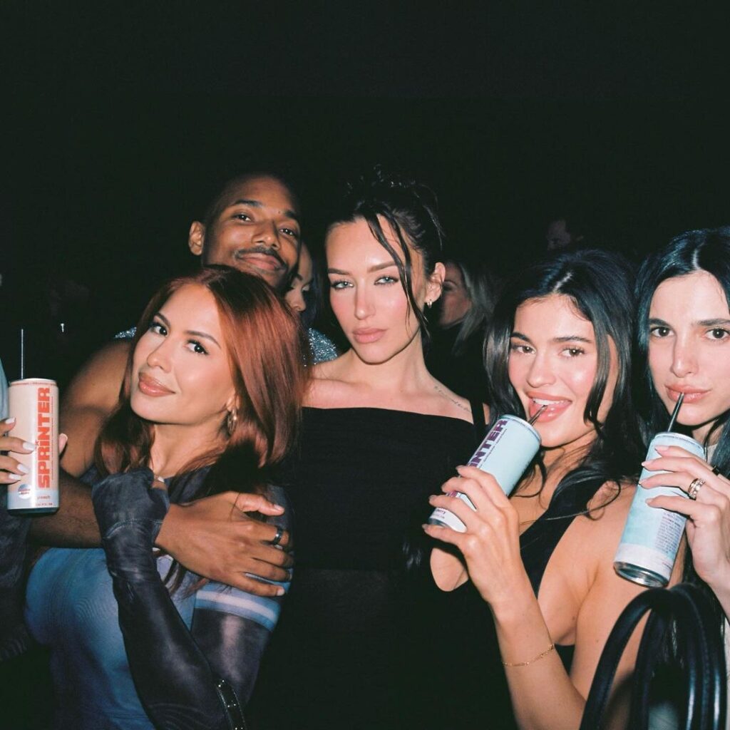 Kylie also gave her followers an exclusive glimpse of the launch party via her Instagram profile on Thursday night, posting a video of a blue room with stacks of her drinks in each corner and a neon sign of the brand’s logo on the wall. She also shared a clip showing her posing with several friends.
