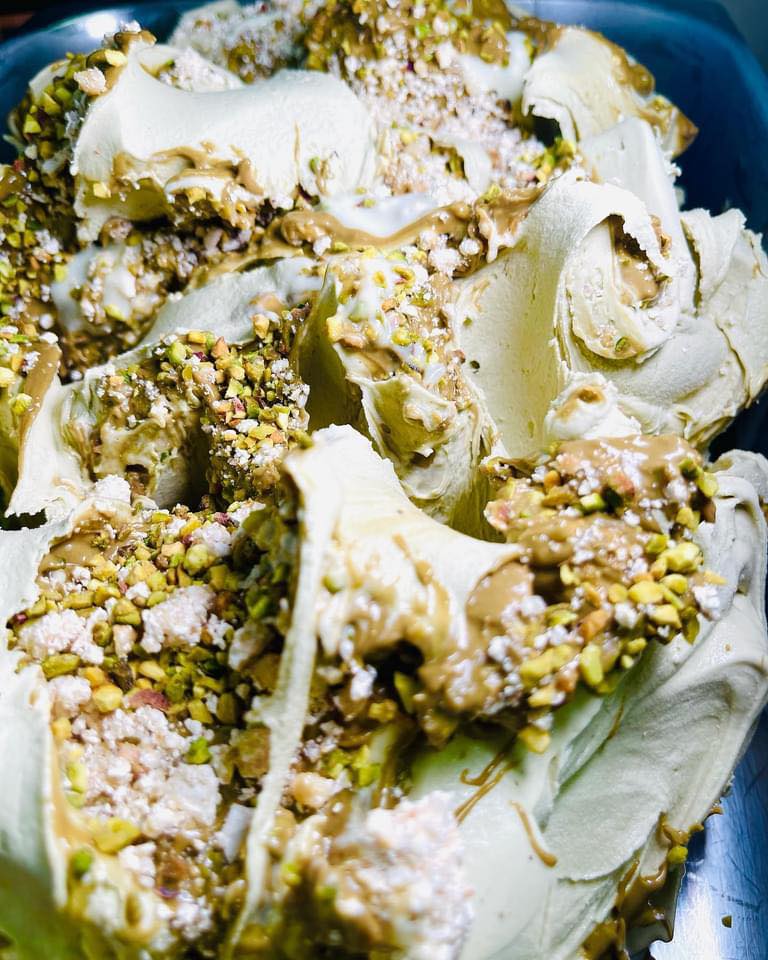 In its display, you can find up to 40 flavors, including the iconic grandma’s cookie ice cream, pistachio, cookie with Nutella, blood orange, fresh mint, Catalan cream or the new nostalgic addition of cotton candy.