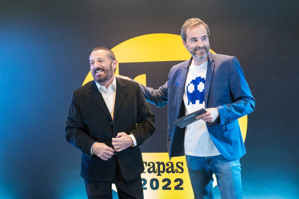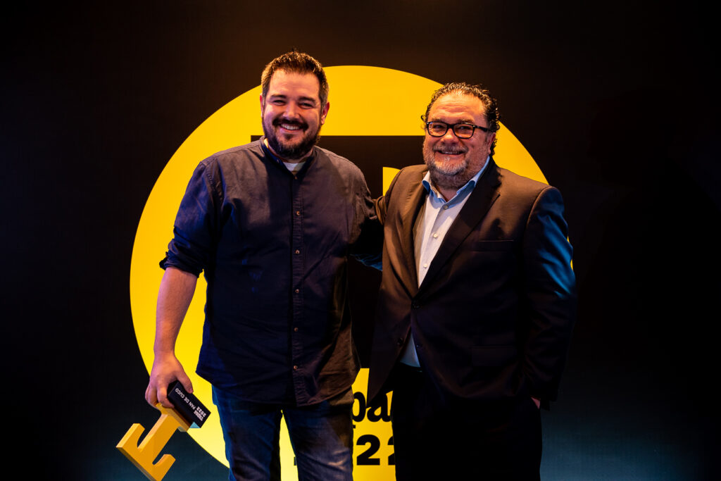 Álex Ortiz, de Pan de Cuco (Suesa), T de Oro de Cantabria; e Ignacio Quintana, director general de SpainMedia.