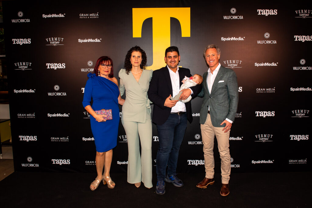 Rocío Rodríguez Navarro; Rocío Ruiz Rodríguez; Hugo Ruiz, de Piscolabis Gastrobar (Ceuta), T de Oro de Ceuta, con su bebé; y el joyero Moisés Chocrón.