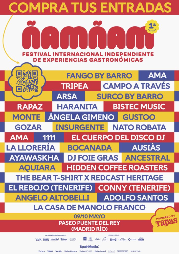 Ñam Ñam Festival contará con el apoyo de Mahou, Visa, Viña Pomal, Turismo de Tenerife y Neolith como patrocinadores principales; además de firmas e instituciones como Tilda, Pasta Garofalo, Go-Tan, Lateado Pascual, Aceite de Oliva de España, Comunidad de Madrid y Ayuntamiento de Madrid. ¿Te lo vas a perder?