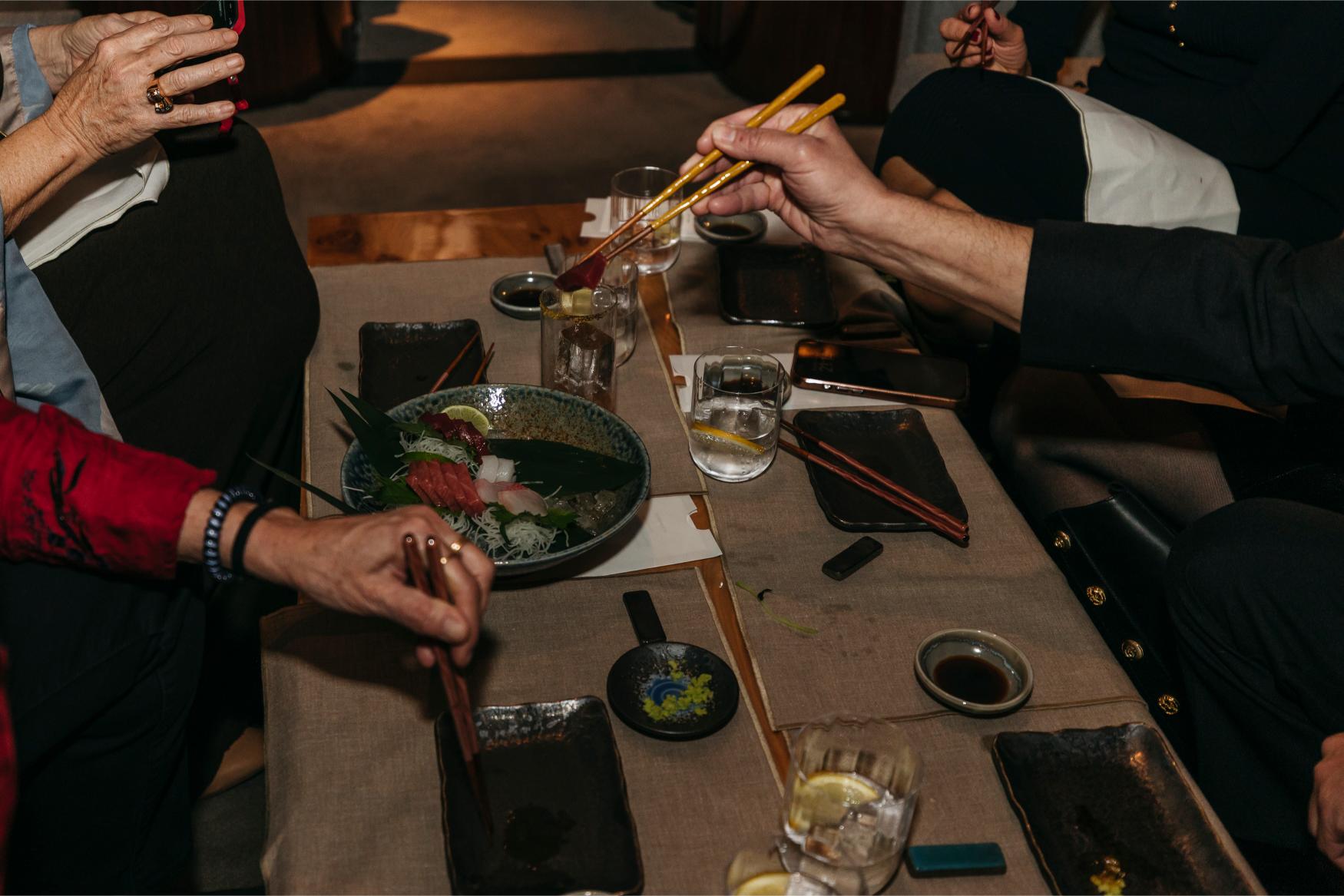 Todos decidieron relegarse al puro hedonismo, dejándose llevar por las recomendaciones de Bastian y Francisco Cantos, Manager Director de Forbes House, construyendo de manera conjunta un menú único maridado con sakes premium, vinos inesperados y coctelería de autor.