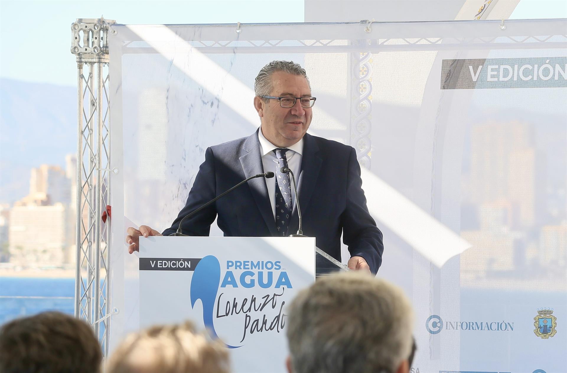 «Debemos estar todos alerta y alzar la voz para que a esta tierra llegue el agua que se merece y que por derecho deben tener todos los alicantinos», ha apuntado el dirigente provincial este viernes en Benidorm, donde ha participado en el acto de entrega de la V edición de los Premios Agua Lorenzo Pardo.