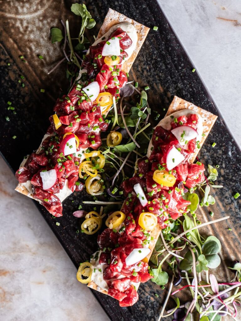 En la carta conviven sin prejuicios platos con acento asiático, mediterráneo y latino, reinterpretaciones de clásicos que funcionan como abrazos conocidos, y mucho protagonismo al producto de cercanía, fresco y sin disfraces. El atún rojo de almadraba, las carnes nobles o las verduras de temporada se elevan sin perder su esencia. Y aunque la carta evoluciona con el tiempo, se mantiene una constante: aquí se viene a disfrutar… y a presumirlo.