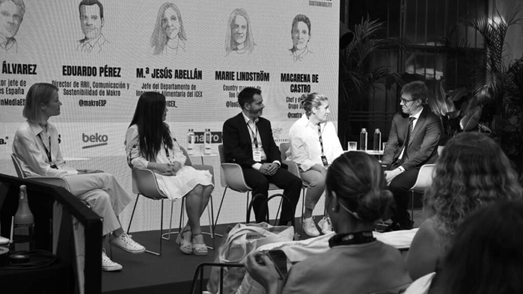 A lo largo de toda la mañana se ha tenido muy presente el impacto ambiental de la industria alimentaria. En la primera mesa redonda, nombres como Eduardo Pérez, director de RRII, Comunicación y Sostenibilidad de Makro, Mª Jesús Abellán, jefe del Departamento de Innovación Alimentaria del ICEX, Marie Lindström, Country Manager de Too Good to Go y Macarena de Castro, chef y dueña de Grupo DCastro han debatido sobre la sostenibilidad en la cadena de valor de la industria agroalimentaria, en una charla que ha estado moderada por Pablo Álvarez, redactor jefe de Forbes España.