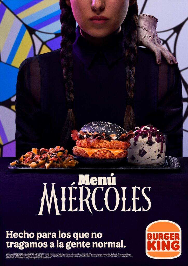 “La actitud valiente y rebelde de Miércoles encaja a la perfección con el espíritu inconformista de Burger King®. Esta colaboración es el match ideal para quienes no temen ser diferentes” afirma Yvette Altet, directora de marketing de Burger King® España. “Nuestro lema “Have it your way” refleja ese compromiso con la autenticidad, algo que las nuevas generaciones valoran profundamente”, añade.