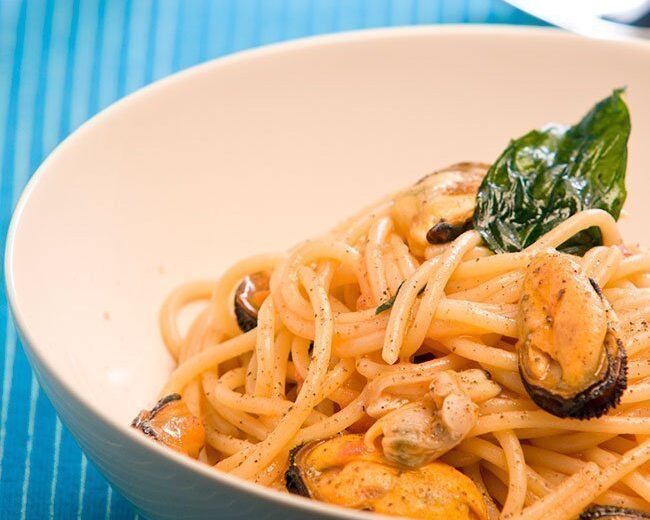 Espagueti con mejillones y almejas