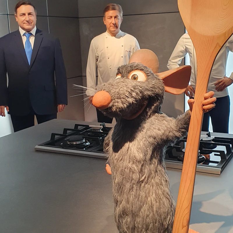 No todas las figuras de cera representan personajes reales del mundo de la gastronomía. El icónico Ratatouille también está presente en el apartado de cocina, para el deleite de los fans de la película.