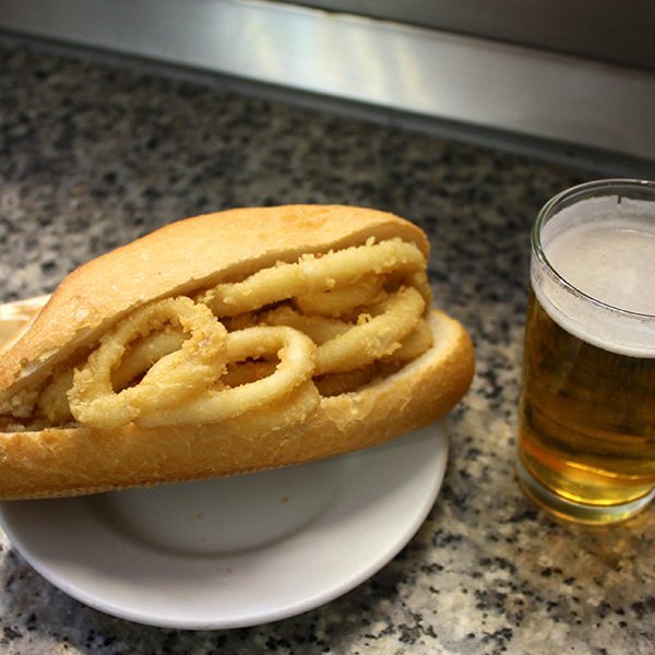 Rebozado con harina de trigo y harina de garbanzos, frito por fuera, fresco y caliente por dentro y rematado entre dos panes para comerlo de pie en un bar de la Plaza Mayor. Así de sencillo es el famosísimo bocadillo de calamares madrileño. Es toda una experiencia y un requisito comerlo en clásicos bares como La Campana o El Brillante pero, ¿por qué lo comemos tanto en la capital?