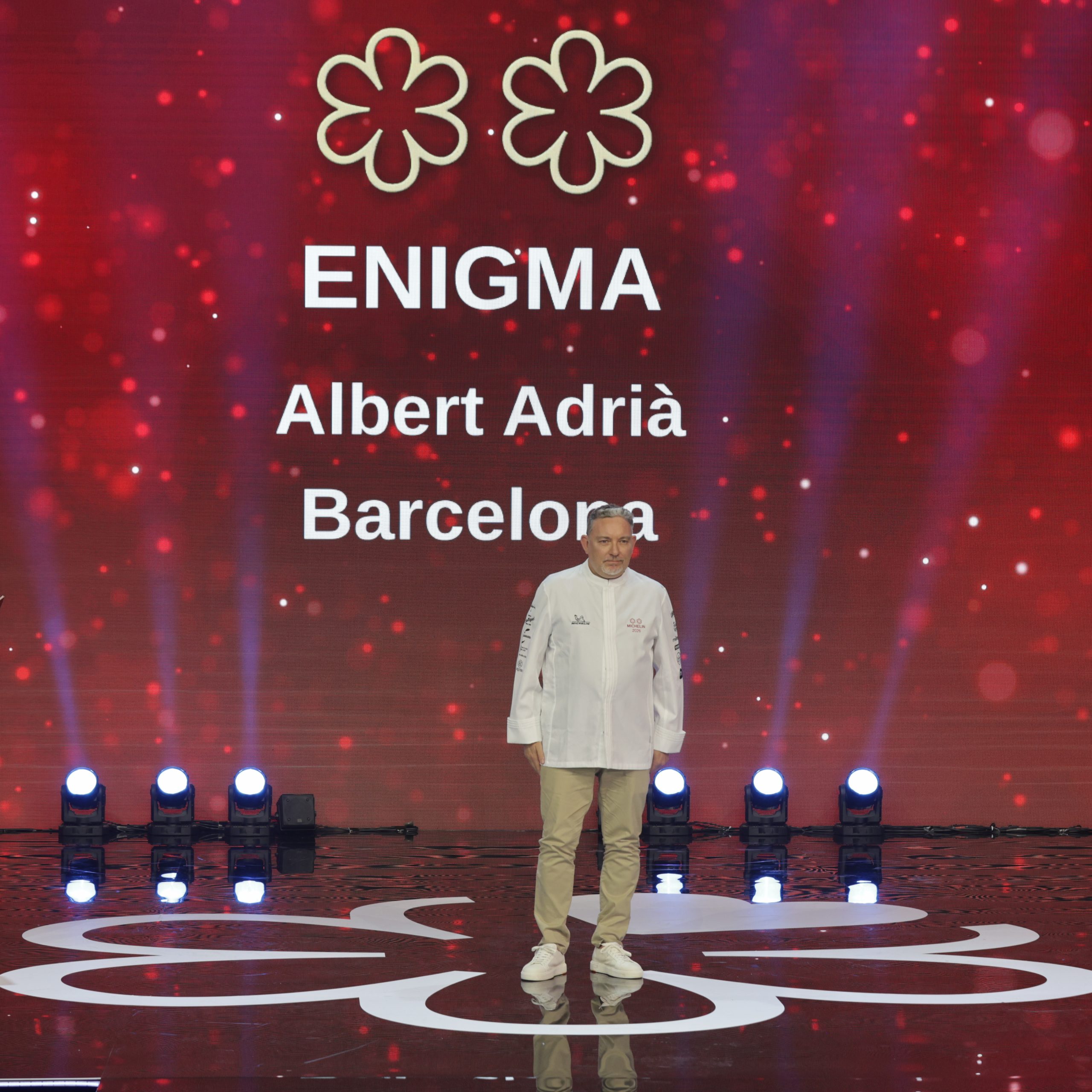 Entre ellos —y en lo que el mundillo y sus colegas entendieron como el saldo de una deuda incomprendida desde hace dos ediciones— a Albert Adrià con Enigma. Un Adrià irónico que jugó con el público cómplice, en pie y aplaudiendo a rabiar mientras bajaba el auditorio a recogerla, al asegurar que «acababa de levantarse de la siesta y le había caído la segunda estrella». Fue el último de los cinco nuevos biestrellados en recibirla en un escenario en el que, por motivos de salud, el presentador Jesús Vázquez tuvo algún lapsus. Con todo, Cataluña, con tres en Barcelona (Aleia, Enigma y Mont Bar) y otro en la leridana localidad de Bellvís (La Boscana), fue la comunidad más agraciada. El otro de los nuevos dos estrellas, en Madrid, lo revalidó Ramón Freixa Atelier en su nueva ubicación.