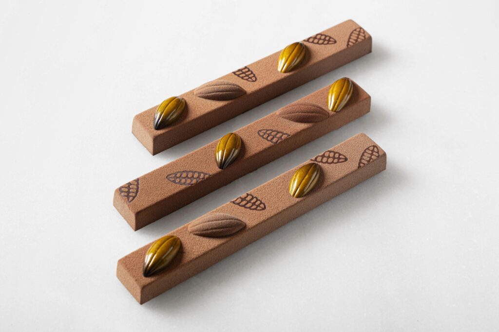 La gran propuesta de Hofmann para la temporada consiste en un turrón inspirado en el bombón Quetzalcóatl galardonado como Mejor Bombón Artesano de España 2025. La bombonería de autor se transforma aquí en una tableta en la que se conjugan tres texturas que contiene en su interior una ganache de caramelo especiado, un compota exótica de fruta de la pasión, albaricoque y yuzu, y una gianduja crujiente de almendra.