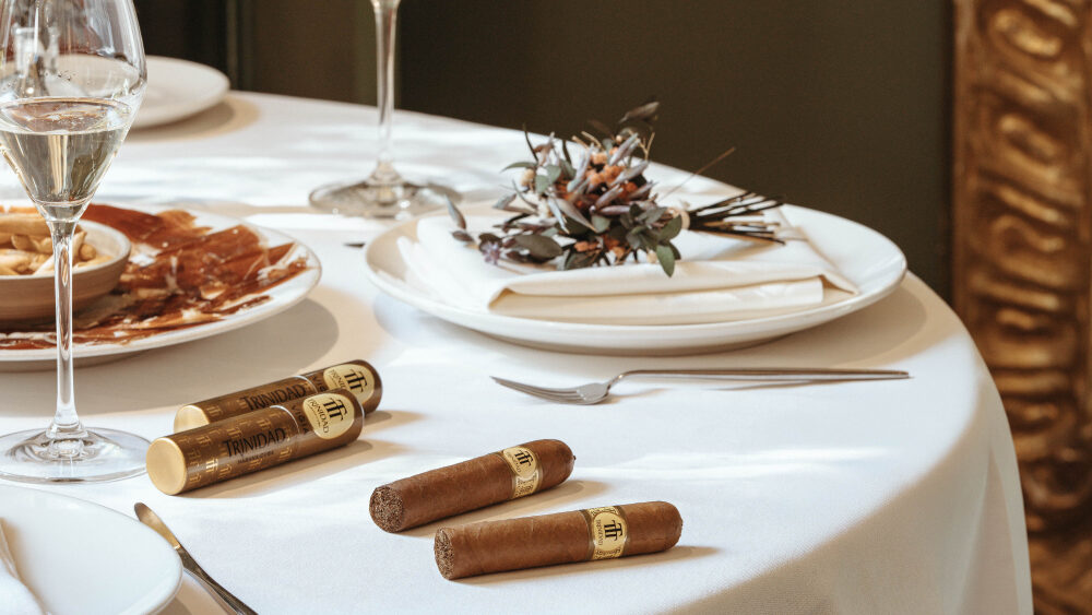 Existen momentos en los que la Navidad se siente más auténtica: cuando el ritmo baja, la mesa brilla y los sabores hablan por sí solos. En ese escenario íntimo, un Habano Trinidad Vigía, acompañado de una copa de cava burbujeante y un delicado corte de jamón 100% ibérico, se convierten en protagonistas de un maridaje que respira elegancia y disfrute.