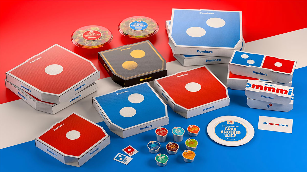 La cadena renueva su imagen tras 13 años para conectar con las nuevas generaciones y amantes de la pizza, adaptando nuevos tonos de azul y rojo más saturados, una tipografía con trazos gruesos y redondeados bautizada como ‘Domino’s Sans’.
