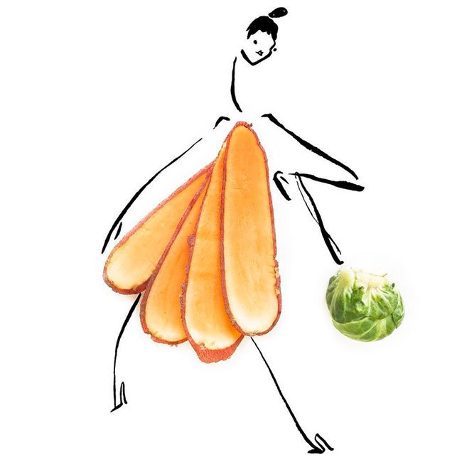 No lleva ni un año haciendo ilustraciones con comida y ya se ha convertido en toda una sensación de las redes sociales. Gretchen Roehrs vive en San Francisco y encuentra inspiración en la naturaleza que la rodea, especialemente aquella proveniente de las frutas, verduras y hortalizas que tan fáciles son de encontrar al norte de California en algún mercado de productores. Y aunque parece sencillo lo que hace, también tiene su mérito ponerle un mono hecho con un plátano a un figurín, o unas pitayas a modo de vestido delos años 20 a unos trazos del cuerpo femenino, y que encima, te sigan más de ochenta mil personas en tus edes sociales. “Tanto la comida como la moda son materiales tangibles con los que lidiamos día a día. Nos vestimos y comemos a diario, así que para mí era algo natural intentar encajar a ambos en el mismo proyecto. Para ello, normalmente empiezo haciendo una ilustración alrededor de una pieza de fruta o de algún vegetal que me haya inspirado”, confiesa Roehrs. ¿Una pitaya por ejemplo? “Las pitayas vendrían a ser el Vetements de las frutas, ¿no?”, bromea Gretchen en su última foto de Instagram. Puede parecer que esta artista lleva una dieta de lo más saludable y purista, pero en sus creaciones también hay un merecido hueco para pecados golosos como tartas de calabaza con motivo de Acción de Gracias, galletas que le felicitan un cumpleaños a la top Karlie Kloss o un croissant para conmemorar el Día de la Bastilla. ¿Su próxima aventura? Un libro de la mano de la editorial Rizzoli (gretchenroehrs.com).