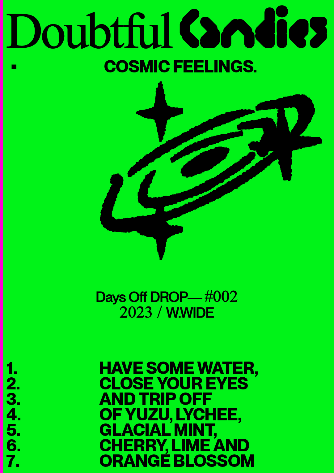 Tras el lanzamiento de Greatest Flops, el primer vinilo recopilatorio de Grandes fracasos, el labatorio creativo Days Off ha cocinado los caramelos Doubtful Candies: una mezcla de glucosa y nostalgia que evoca las pastillas nocturnas de los años 90 y 2000.