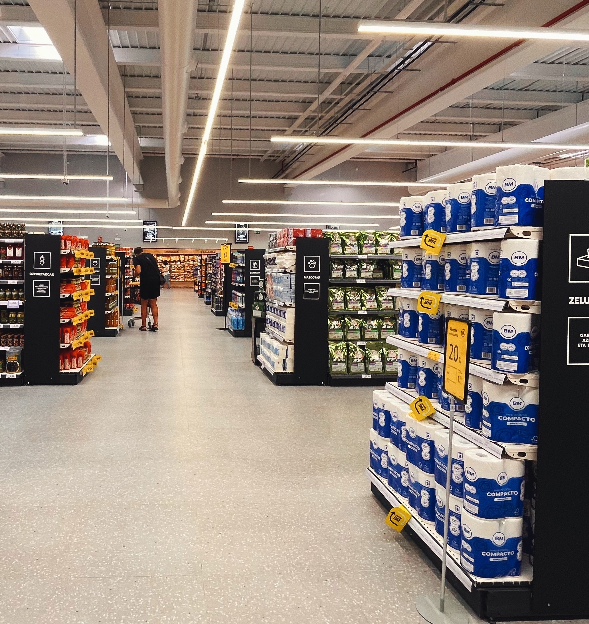La implantación de la marca BM ha comenzado ya en los 292 supermercados del grupo, con las secciones de droguería, celulosas, encurtidos, aceites, leches y está previsto que culmine en la totalidad de las referencias en el primer trimestre de 2024.