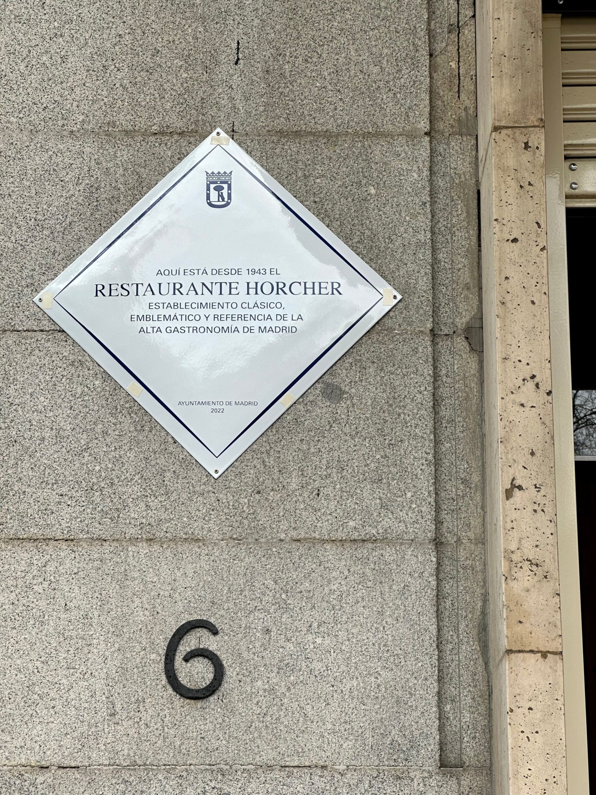 El restaurante Horcher, en la calle Alfonso XII de la capital, ha sido reconocido por el Ayuntamiento de Madrid «por su calidad y tradición gastronómica» con una placa en su fachada que lo reconoce como «referencia de la alta gastronomía».