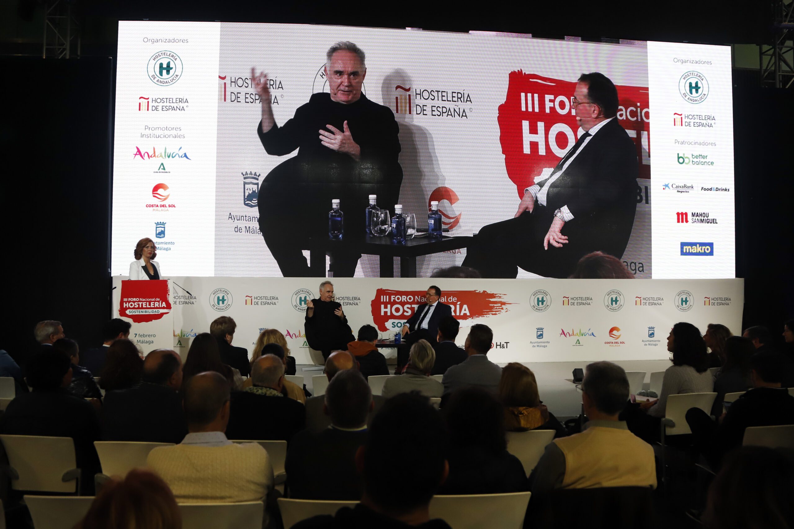 Tras la intervención de Ferrán Adrià, en el acto de clausura han participado Francisco de la Torre, alcalde de Málaga; Víctor González, viceconsejero de Turismo, Cultura y Deporte de la Junta de Andalucía; Gerardo Cuartero, director comercial de Andalucía Oriental Sur de Caixabank, y Javier Frutos y José Luis Yzuel como presidentes de los organismos organizadores del evento, la Federación de Empresarios de Hostelería de Andalucía y la Confederación Empresarial de Hostelería de España.
