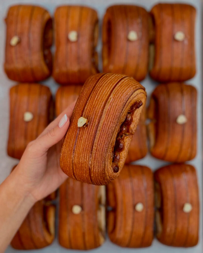De manera simultánea a los ‘flat croissants’, los pasteleros capitalizaron la tendencia en forma de ‘crookie’, es decir, de croissant + cookie. Una elaboración viral que causó sensación en primera instancia en París para después extenderse por todo el mundo, y tener un gran impacto a nivel nacional gracias a Maison Kayser. La masa de esta última se coloca tanto dentro del bollo como en la parte superior, para hornearlo después durante unos minutos, y dejar la elaboración lista.