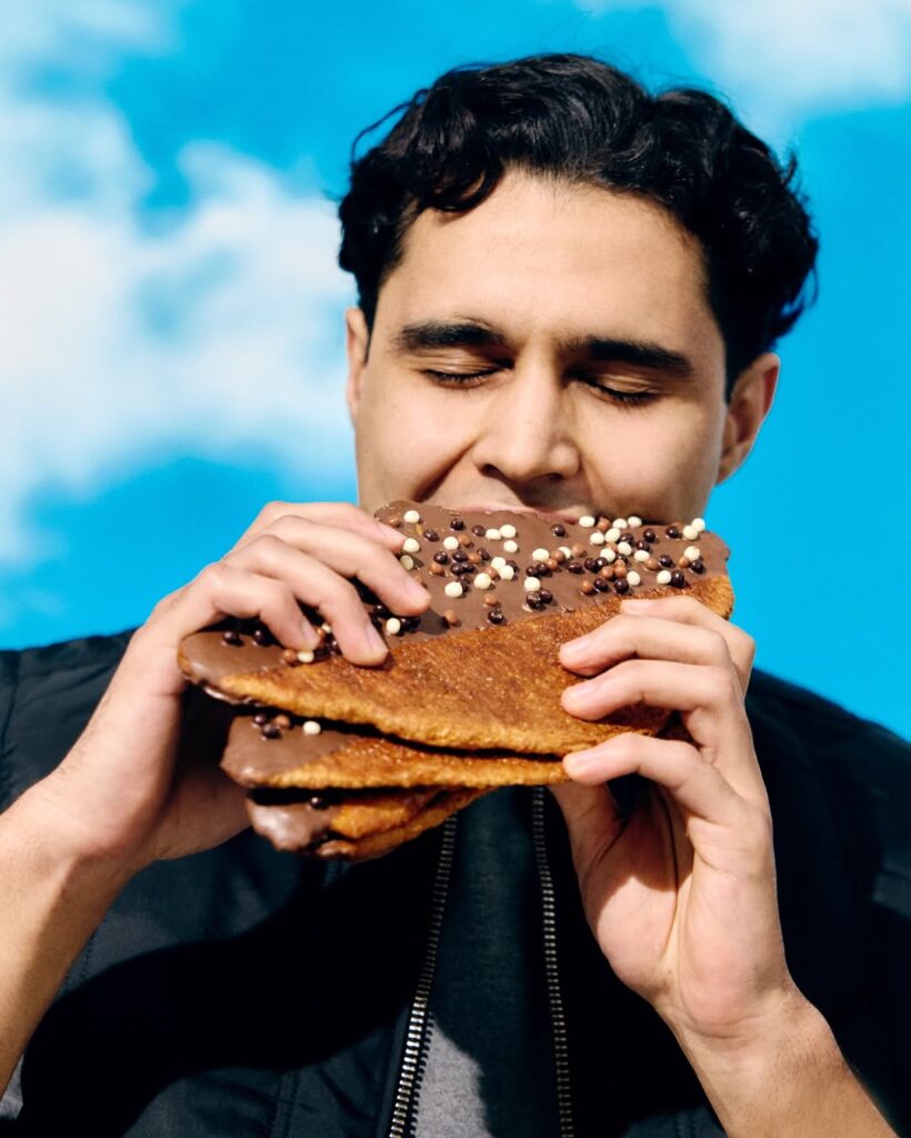 En el restaurante Hungry Club de Dabiz Muñoz, uno de los postres más codiciados son sus flat croissants con los que experimenta constantemente para presentar nuevos sabores. El cruasán plano, con su textura dura pero crujiente y azucarada, se recubre de chocolate blanco y mini marshmallows o de chocolate con perlas de chocolate crujientes.