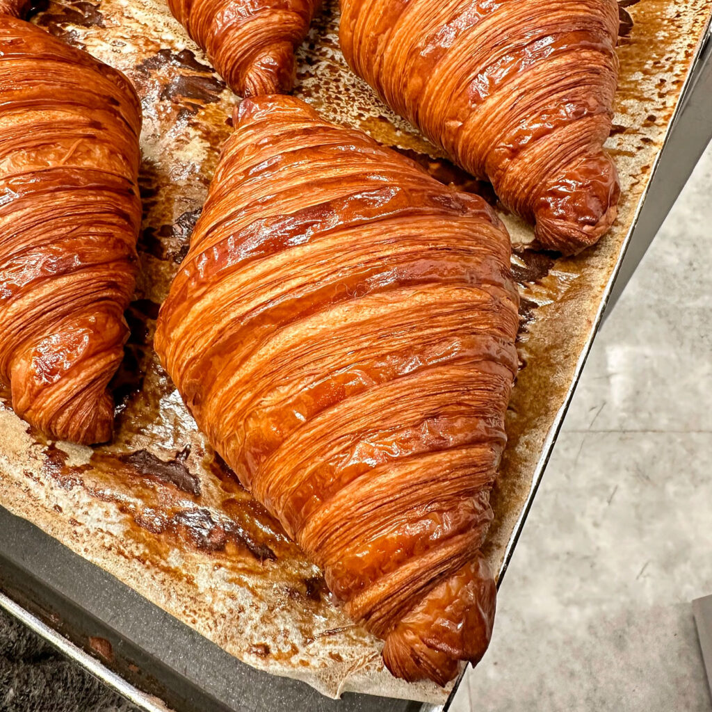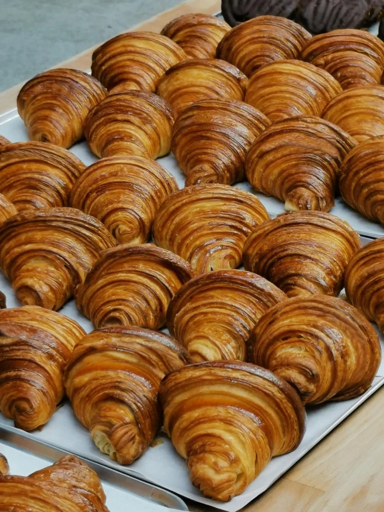 El proceso artesanal incluye el reposo en frío de la masa, el delicado trabajo de pliegues y una fermentación larga y lenta antes del horneado con el que dan lugar al croissant clásico, pero también al de gianduja, almendra o chocolate negro 70 % relleno de crema de chocolate. Los fines de semana se incorporan variedades especiales como el de crema tostada, mascarpone y compota de frambuesas, o el de pistacho.