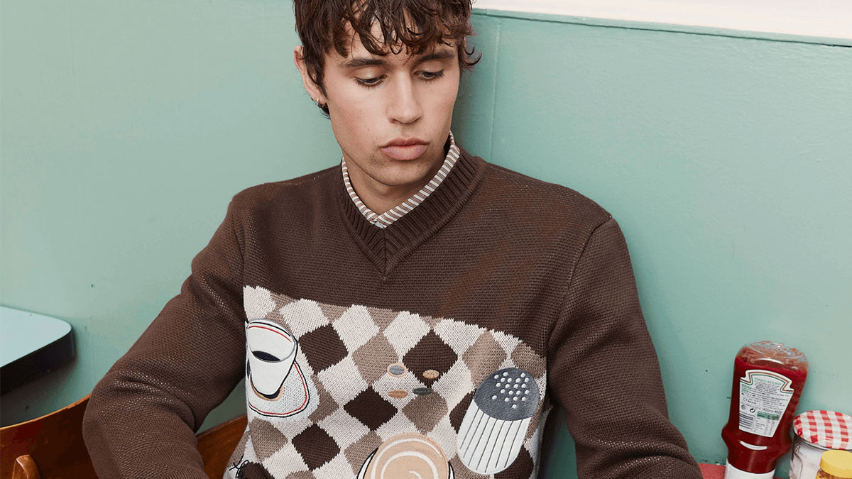 House of Sunny regresa a la escena para hacer una pausa, sincronizarse con la cotidianidad y explorar la cultura del café local desde dentro. El desayuno británico se estetiza esta vez a través del «britcore» y de una colección de «dosis diarias» como jerséis bordados, chándales con estampados retro y polos de punto que representan esas escenas costumbristas.