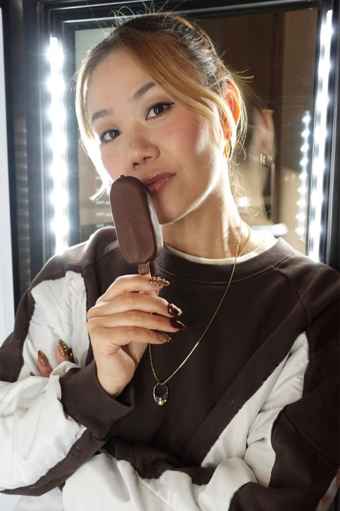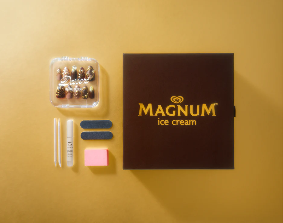 Naomi Yasuda, una de las nail artists más reputadas del sistema, que ha trabajado para artistas como Madonna, Charli XCX o Sabrina Carpenter, ha ampliado su portafolio hacia un territorio inexplorado con Magnum Ice Cream en la elaboración de un set de uñas que dan ganas de comérselo.