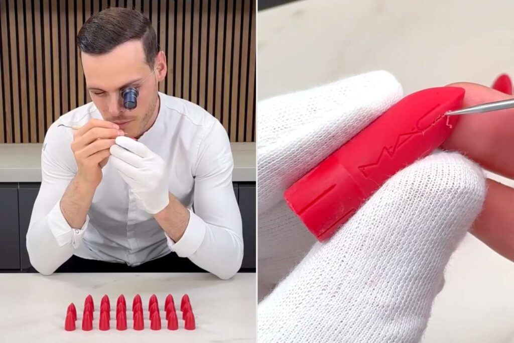 En el vídeo, se ve a Guichon rellenando de caramelo el molde para crear la parte superior de los pintalabios rojos con una manga pastelera. Una vez sellada la parte inferior, talla minuciosamente el logotipo de MAC en cada barra de labios antes de colocarlas en el característico estuche de MAC.