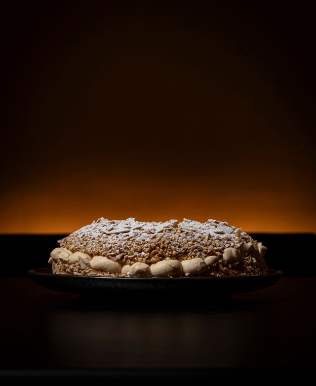 El postre de la temporada se construye con una base de pan brioche ligero, esponjoso y aromático, que sirve de marco para el relleno de nata con toffee de miso, inspirado en el caramelo salado tradicional de la pastelería francesa. En lugar de la sal habitual, Nagahira incorpora miso, un clásico de la cocina japonesa, que aporta un delicado toque salino y un profundo umami.