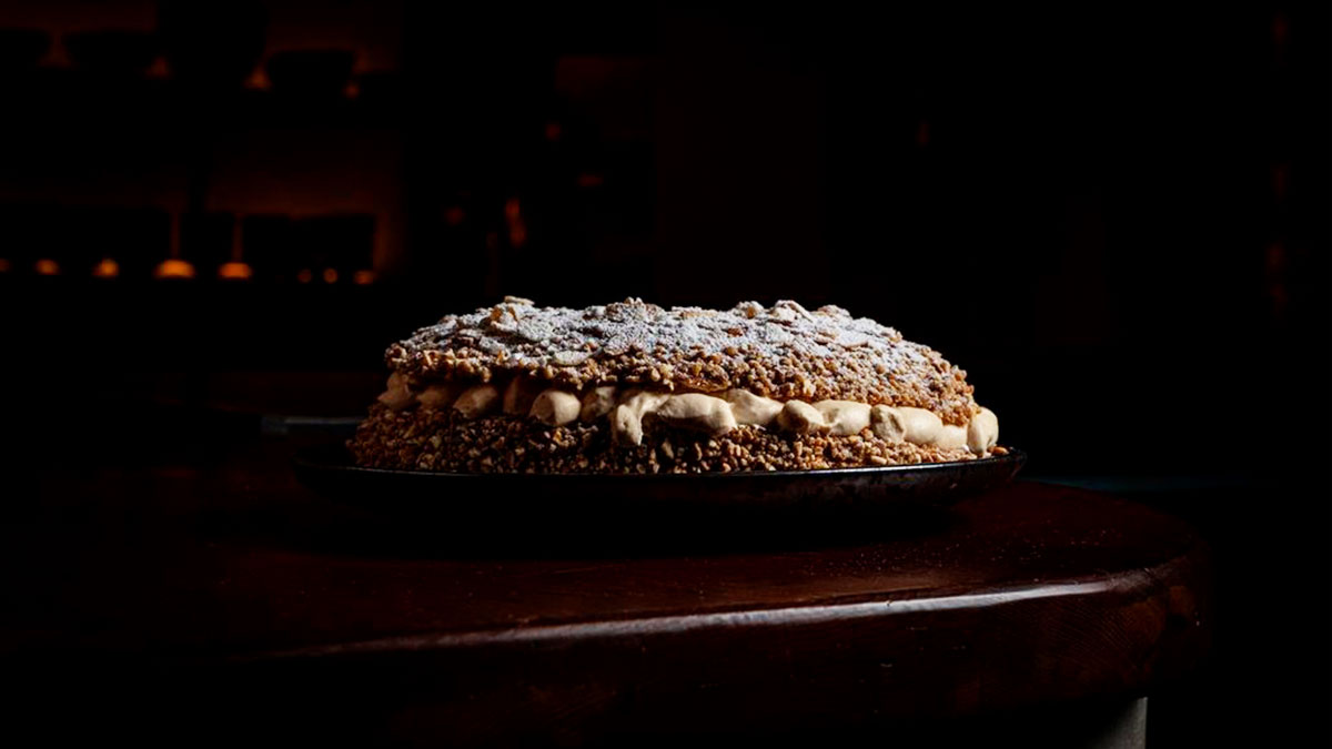 El postre de la temporada se construye con una base de pan brioche ligero, esponjoso y aromático, que sirve de marco para el relleno de nata con toffee de miso, inspirado en el caramelo salado tradicional de la pastelería francesa. En lugar de la sal habitual, Nagahira incorpora miso, un clásico de la cocina japonesa, que aporta un delicado toque salino y un profundo umami.