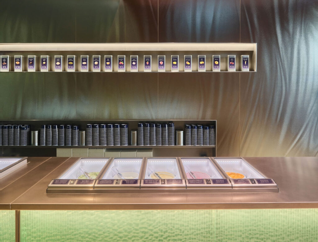 La heladería se presenta como una especie joyería minimalista en clave futurista que centra toda la atención en el producto: en los 60 sabores que han ido desarrollando y sirviendo en base a distintas categorías. Es decir, en clásicos, de temporada, de autor y con alcohol, con la finalidad de satisfacer todos los gustos. Desde el helado de pistacho verde, vainilla, turrón de Agramunt, de framsuesas con rosas y lichi, o de albaricoque hasta otras opciones como las versiones con alcohol con sabores como de margarita o piña colada, con una graduación del 4,5%.