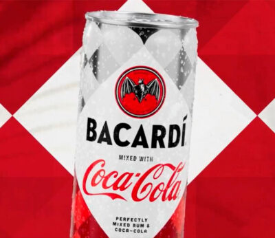 Coca-Cola and Bacardi merge in a cocktail in a can