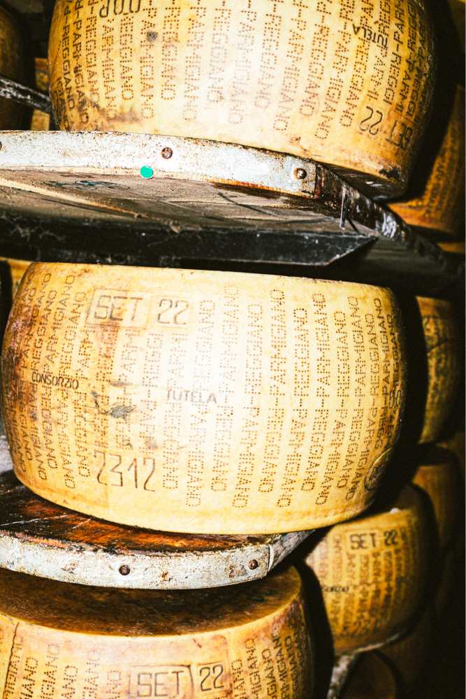Of course, the Consortium is quite strict with the whole elaboration process, from the ingredients to the timing. In fact, in order to be considered Parmigiano Reggiano, a year and a month must pass for the Consortium to fire-seal the frame. Of course, the Caseificio’s identifying stamp and the European Union number must be included beforehand to pass all the corresponding controls.