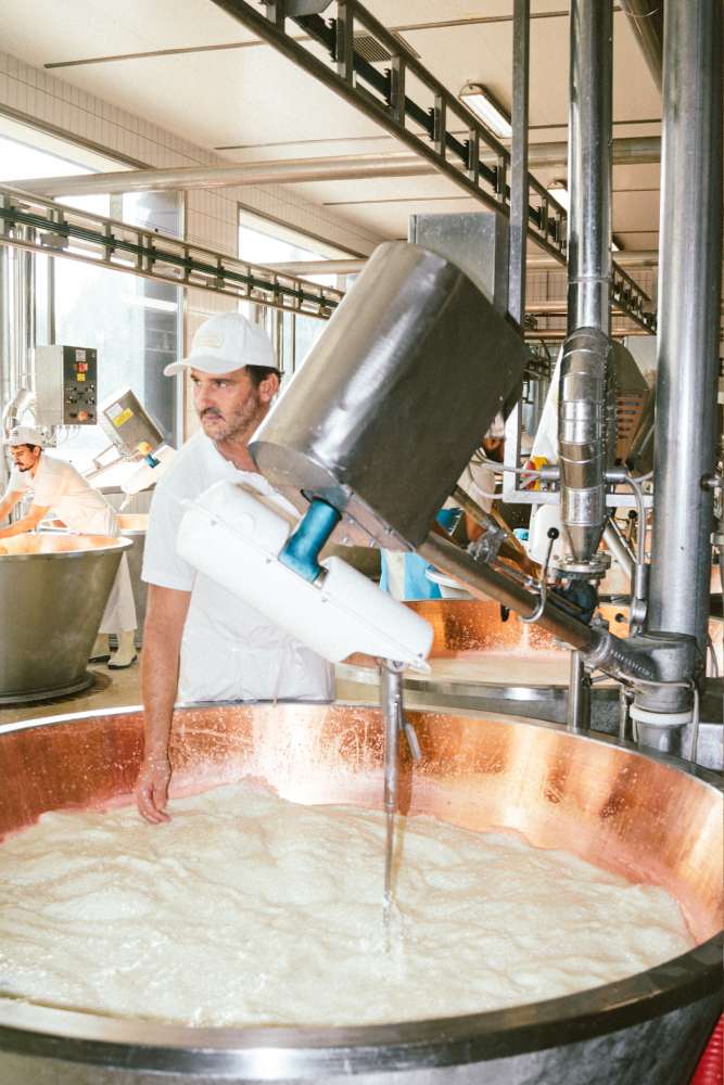 The production of Parmigiano Reggiano is regulated by a Protected Designation of Origin and a Consortium that delimits the parameters to be followed in terms of process and recipe, in order to be considered authentic Parmigiano Reggiano. Although it allows each caseificio – there are 330 producers in the region – to make small modifications. In this case, at Gennari 1954, for example, they do not remove all the cream from the milk, which gives their cheese an intense and distinctive flavor. To make a 50 kg wheel, 500 liters of milk are needed.