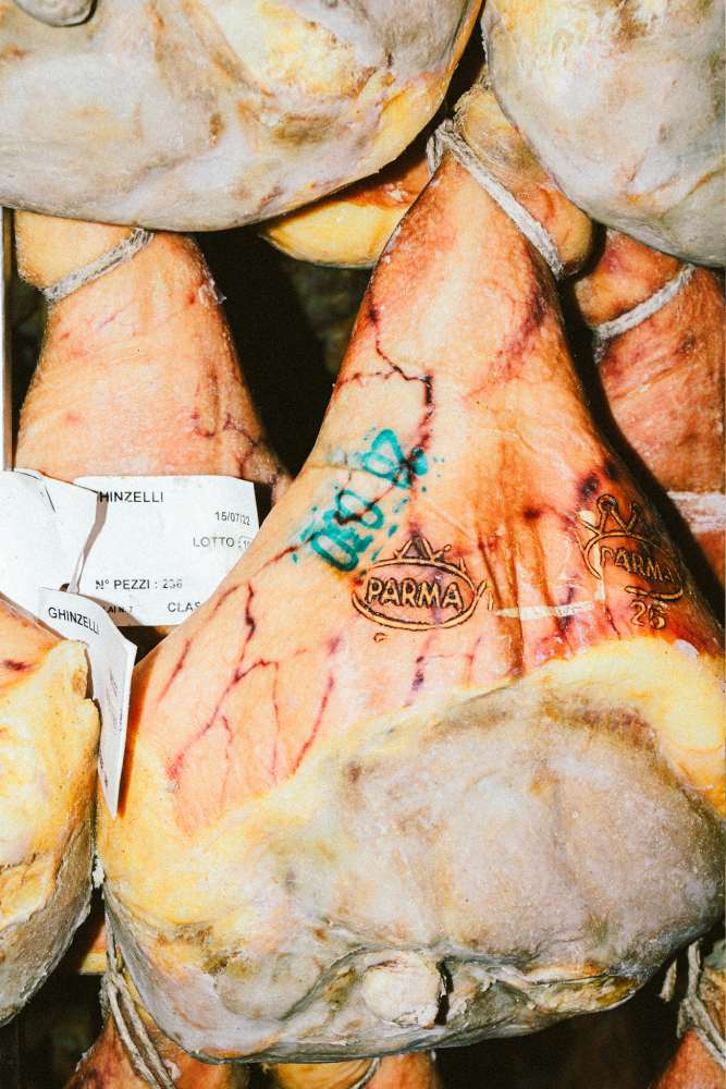 With the road trip off to a great start, the highlight of the trip was still to come: a visit to Parma. Named a UNESCO Creative City for gastronomy, its specialties include two emblematic products such as Parmesan cheese and Prosciutto. To get to know them first hand, we went to the Caseificio Gennari 1953 factory, a family business that is now in its third generation and owns a 750-hectare farm with 2,000 cows, produces about 100 wheels of 50 kg of Parmigiano Reggiano cheese per day and has a total stock of 67,000 wheels. This growth has gone hand in hand with Big Mamma, since almost half of its production goes to the group’s restaurants. For Spain, for example, they usually sell one wheel per day, with an approximate price of 700 €.