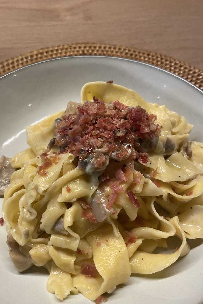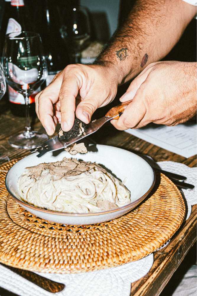 Any gastronomic experience must take place around a table. After touring these two foodie regions in 48 hours and getting our teeth set on truffles, Parmigiano and Salumi, it was time for our palates to experience first-hand all that we had learned. For this, Daniele Tasso prepared a real feast, whose star dish was Spaghetti al tartufo served on a wheel of Oro Nero -another of the cheeses also produced by Gennari 1953-. This recipe will become the new highlight of Bel Mondo’s menu; and if not, time will tell.