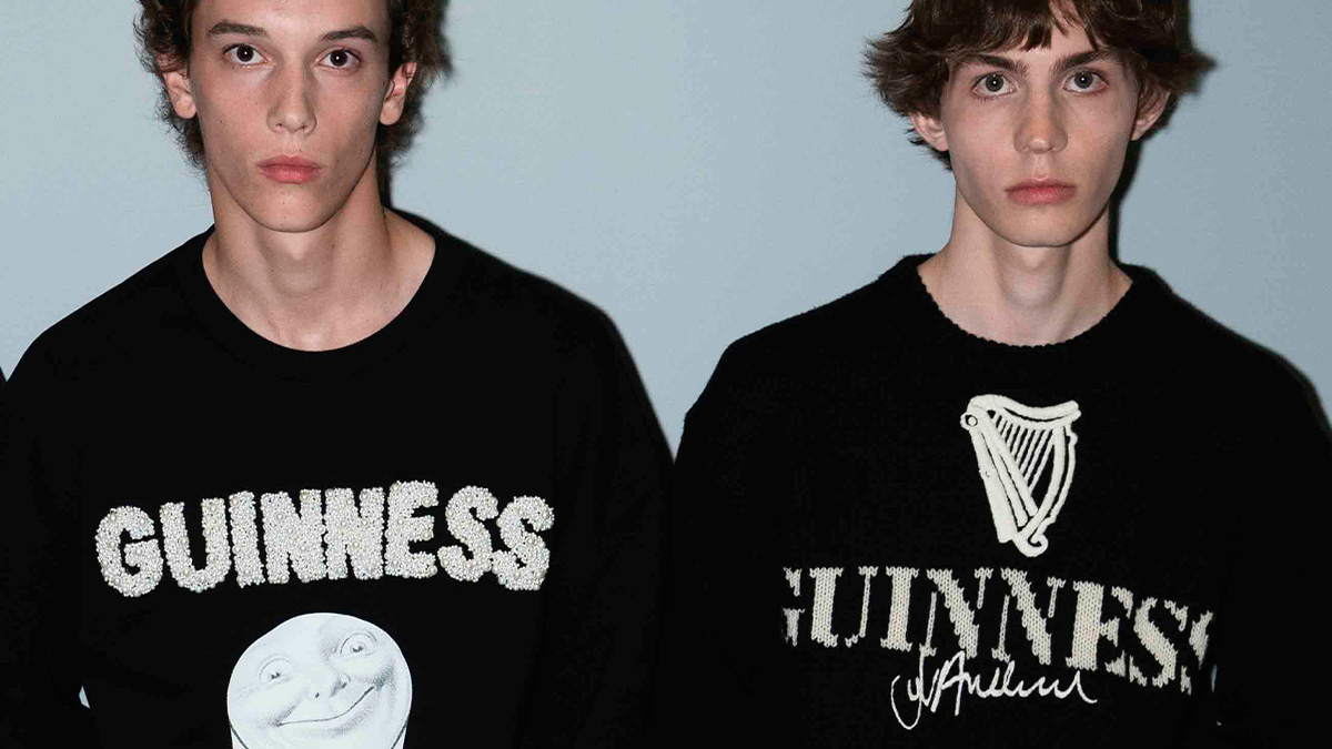 For the SS25 Milan runway, Jonathan Anderson wanted to reinterpret the legacy of Guinness through a series of pieces inspired by the graphic identity of the Irish brewery.
