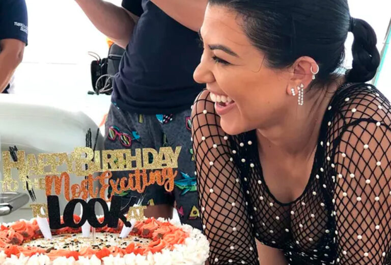 The vintage-inspired cakes designed by Kourt had the names of her three children, Penelope Scotland, Reign, and Mason, inscribed in icing, while Barker’s daughter Alabama Luella and son Landon, and stepdaughter Atiana De La Hoya, also had theirs.