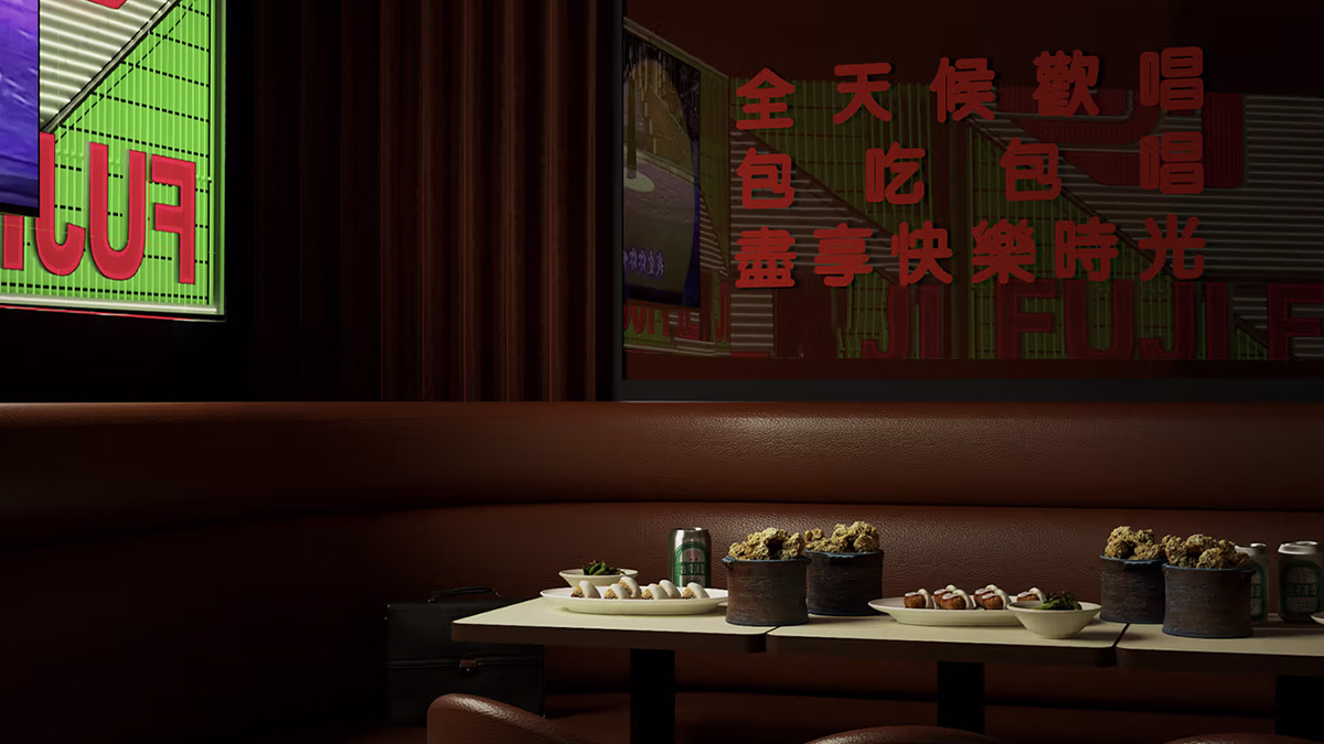 Inside, it also features two private karaoke rooms – with a catalog of over 300,000 songs – that evoke the aesthetic imagery of Edward Yang and Oliver Stone’s lonely man films ‘Taipei Story’ and ‘Wall Street’.