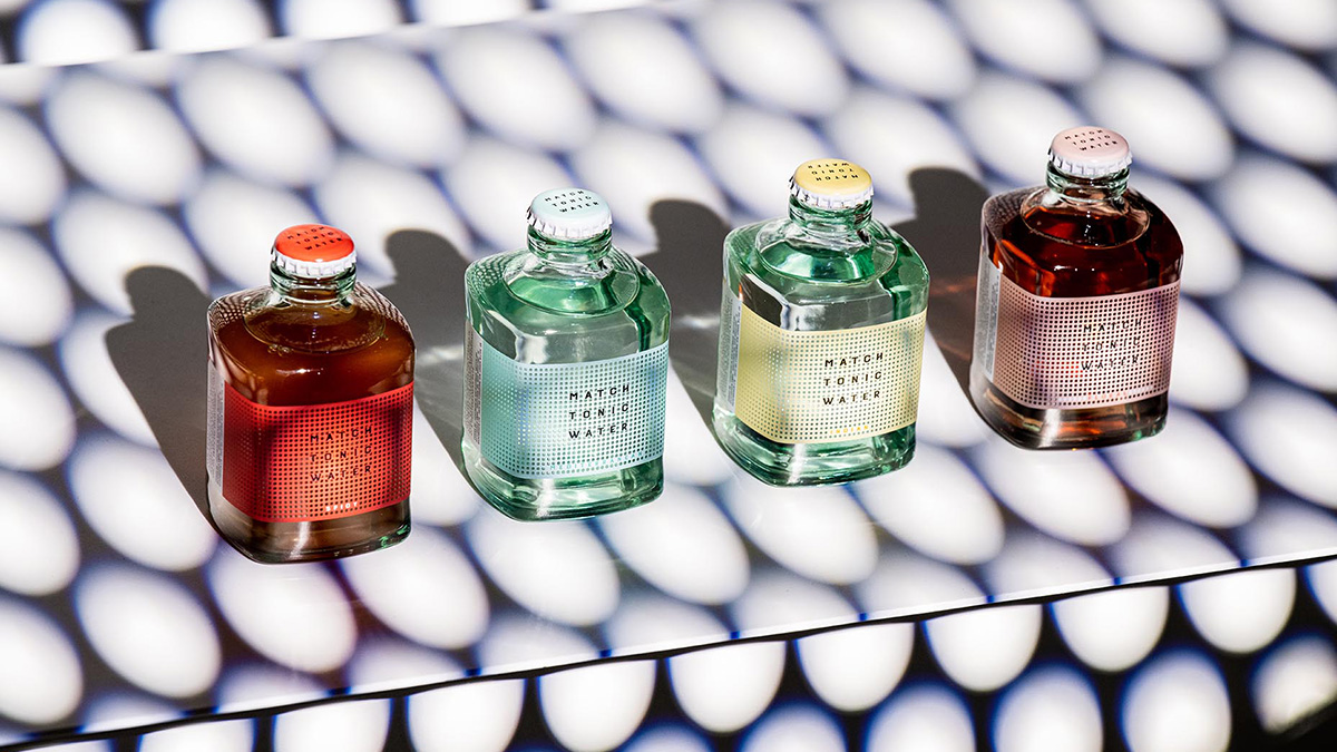The MATCH Tonic Water range features an elevated square design made from recycled glass from old wine bottles and car windscreens, diluting ethics and aesthetics in four distinct references.