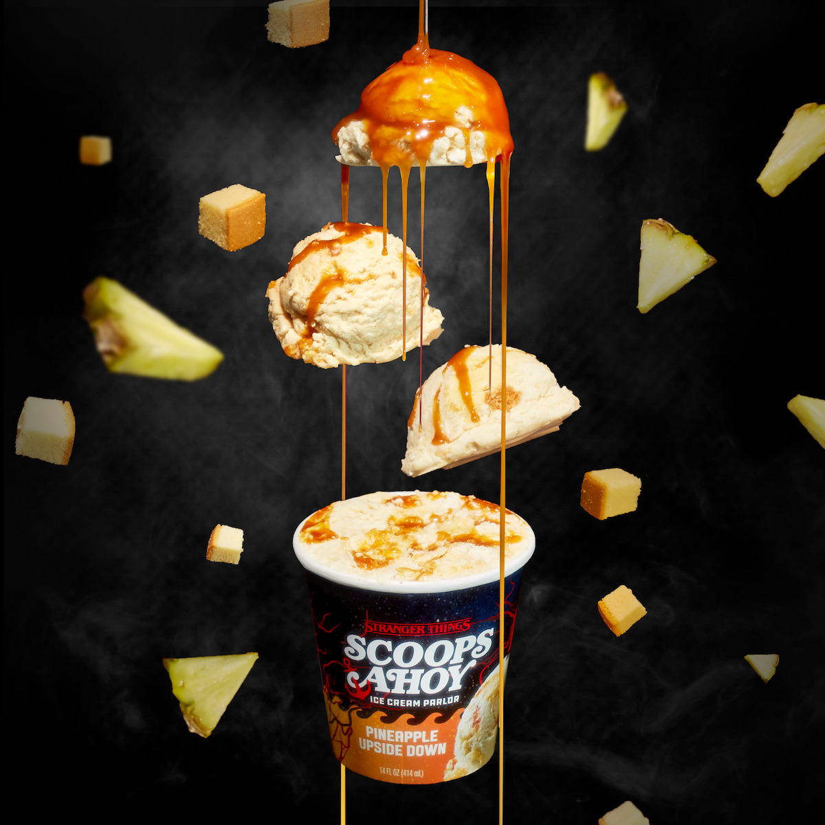 The icy range that evokes the ’80s aesthetic of the series features four classic flavors: the ‘U.S.S. Butterscotch’, butterscotch with salted caramel chocolate; the ‘Triple Decker Extravaganza’, vanilla and butter with waffle, chocolate caramel and peanut butter; the ‘Chocolate Pudding’, chocolate with chocolate caramel and vanilla wafers; and the ‘Cinnamon Bun Bytes’, cinnamon with a cinnamon cream cheese swirl.