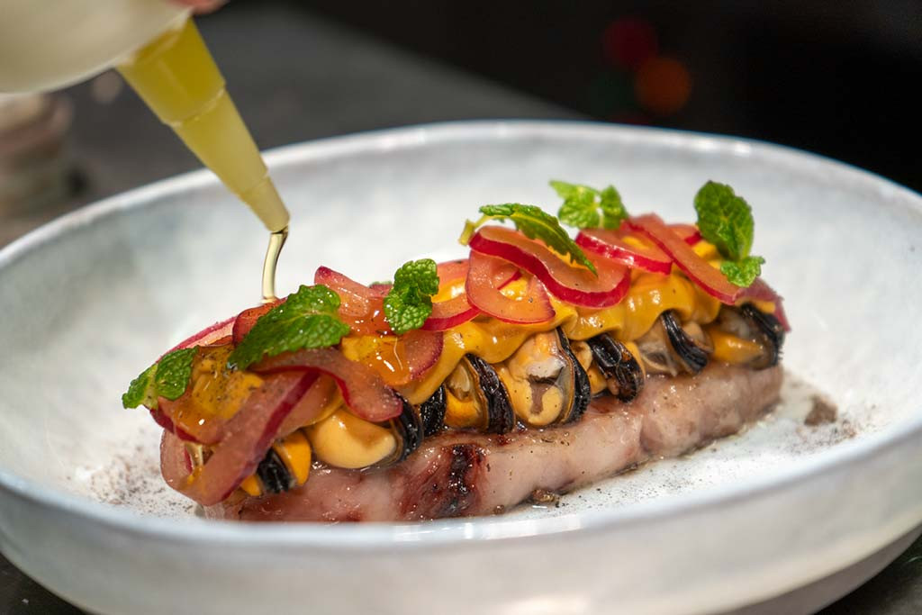 The neighbourhood cuisine served by a group of chefs, including Martín Pimentel, stands out in the form of dishes that evoke traditional and/or grandmother’s cooking, such as prawn croquettes, meatballs with cuttlefish or grilled squid with a spicy touch of kimchi and chilli.