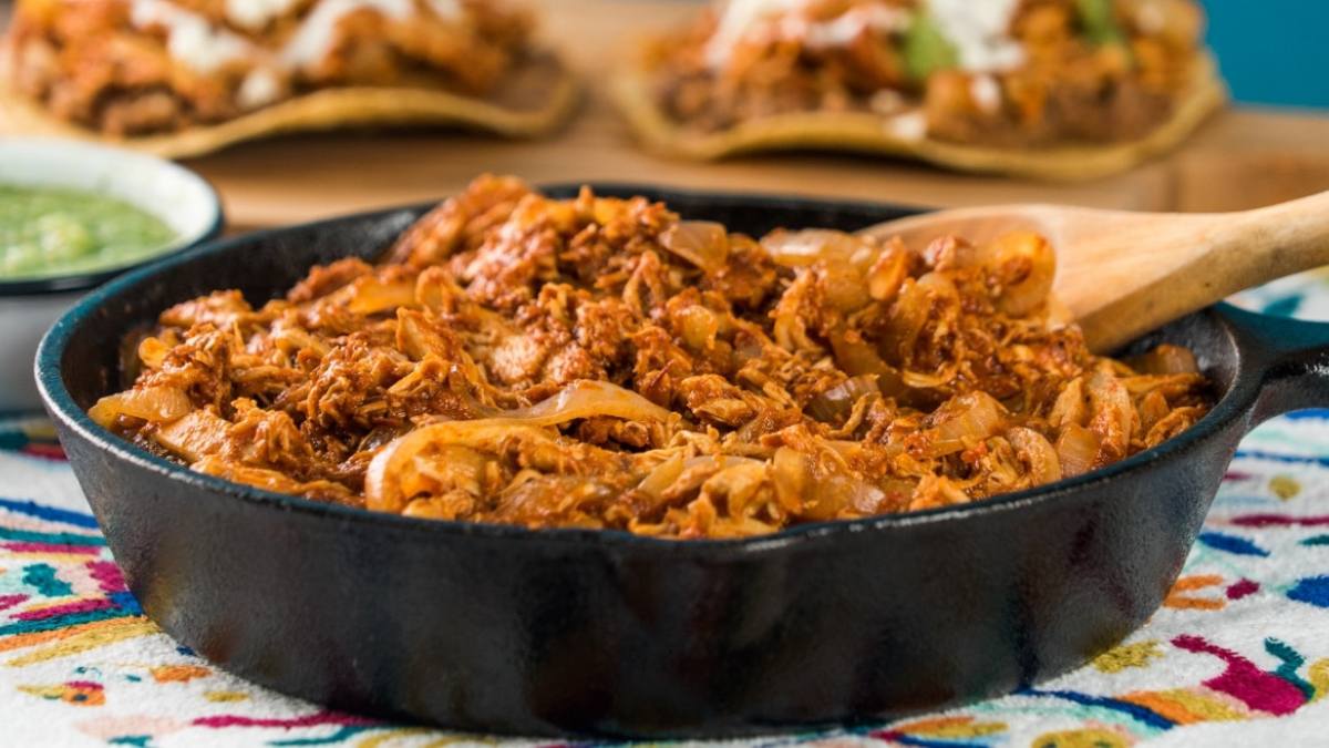 Taquitos, totopos and chicken tinga for a snack in Mexico