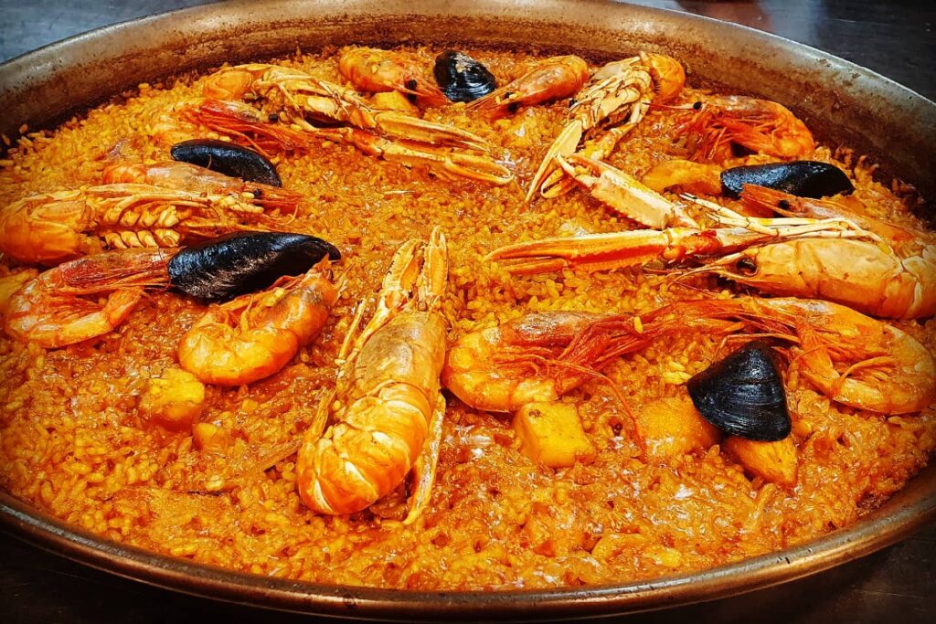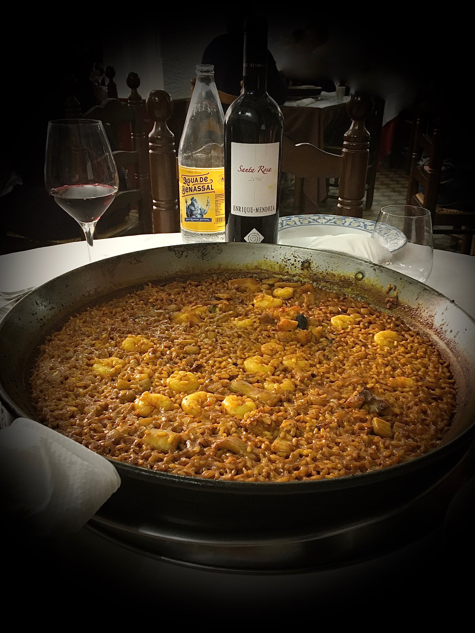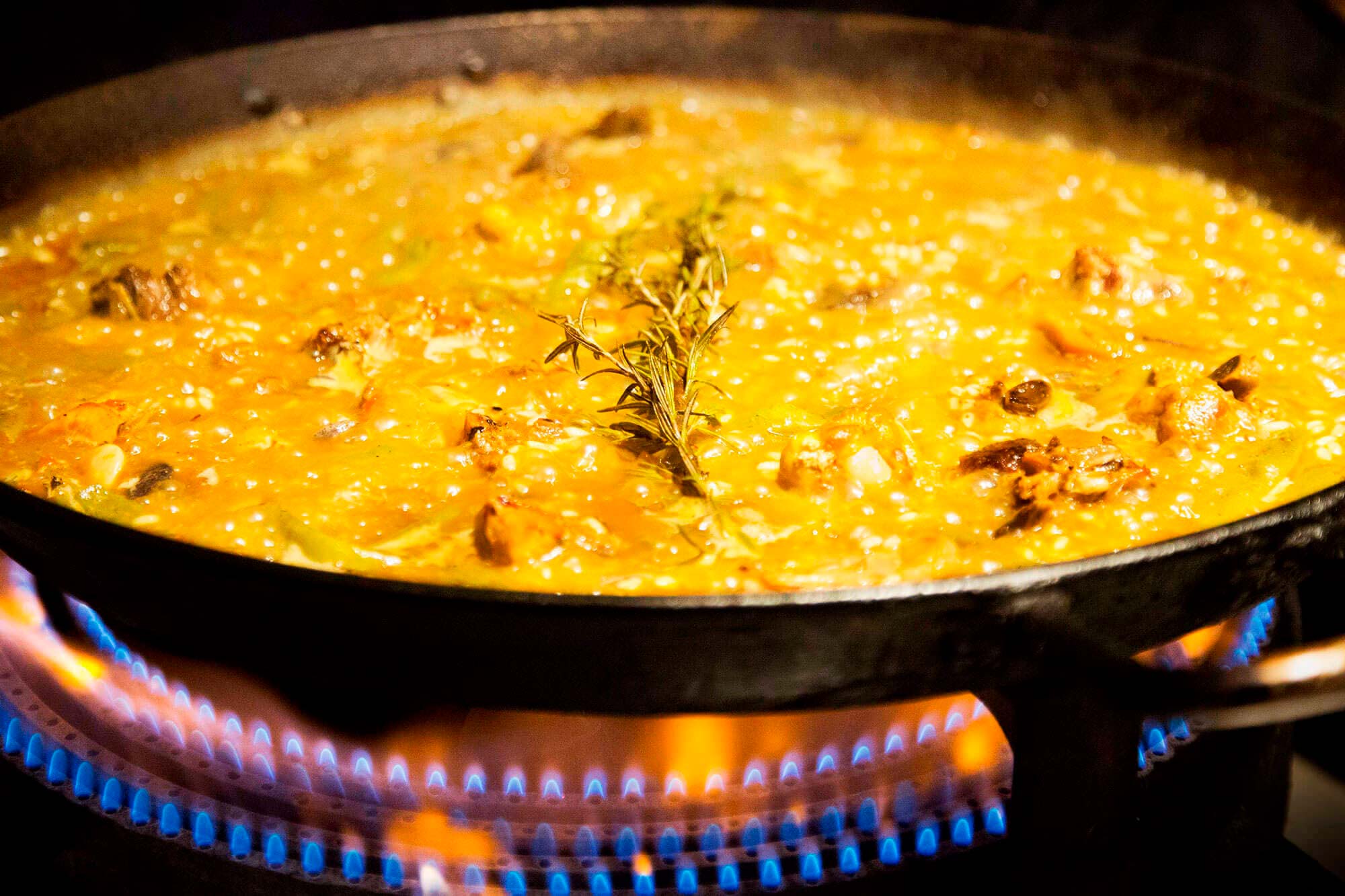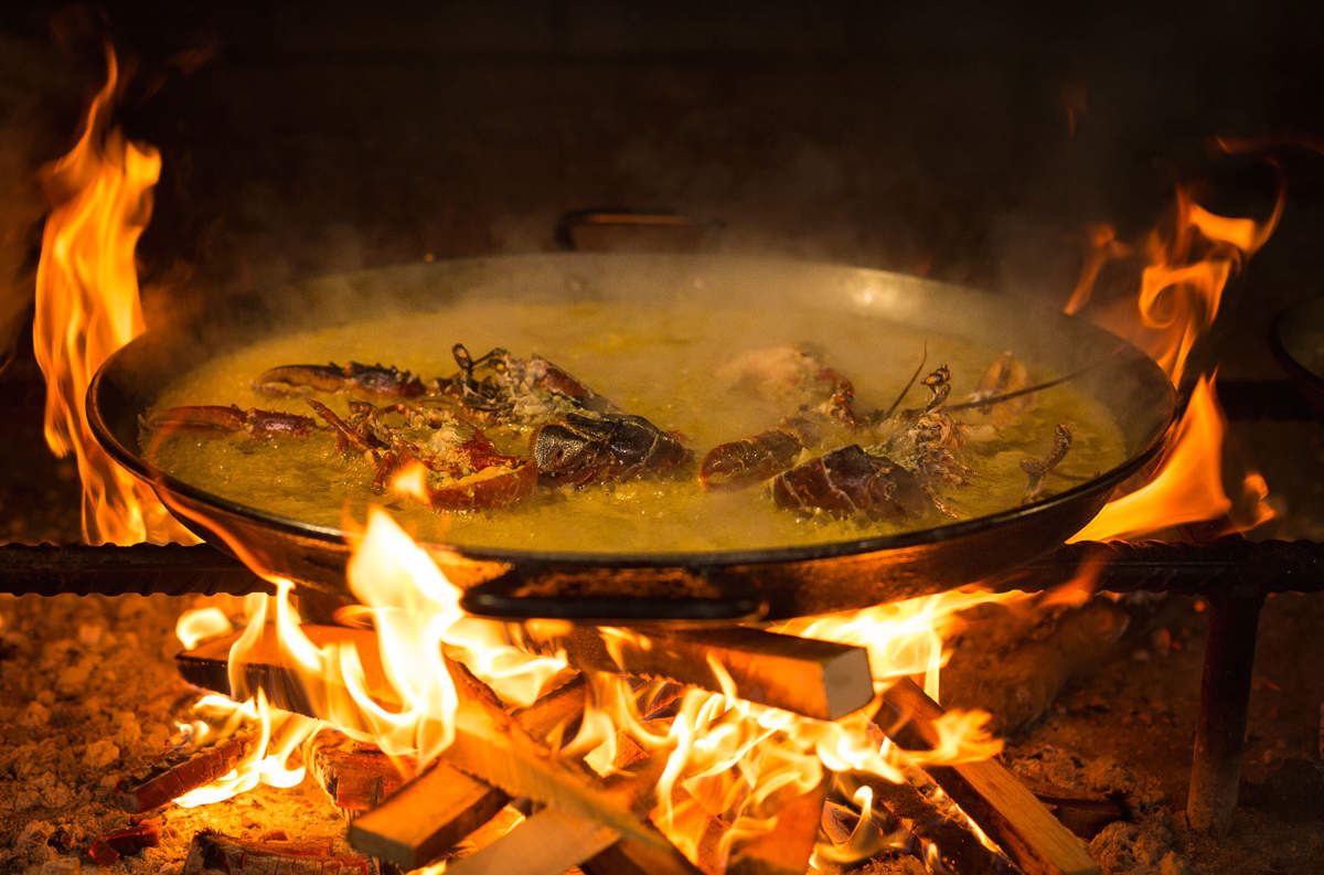 Valencian paella is made with all its classics: saffron, chicken, rabbit, bachoqueta, garrofó, sealed by the smoky flavor of the fire.