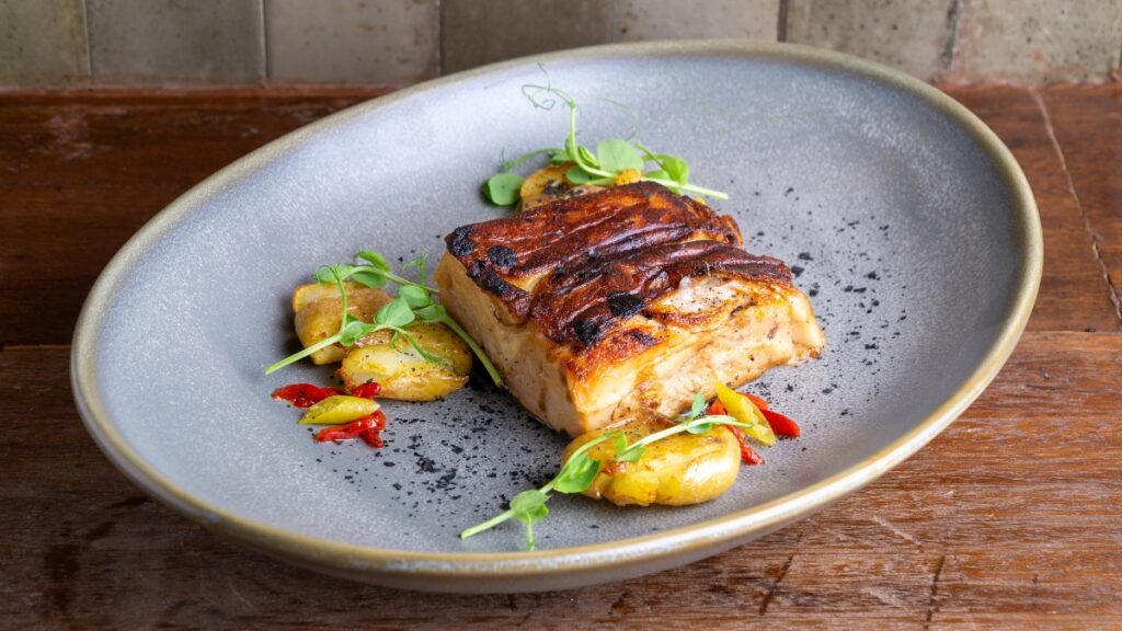 Different meats come out of its spacious (and hypnotizing) wood-fired oven. Among them, the suckling pig ingot, with its garnish of roasted potatoes, and the shoulder of suckling lamb, with a smoked touch, deserve special mention. On the grill, the baby squid, sautéed with caramelized onion juice and fried tentacles, and the sea bass with carrot textures occupy a place of honor. In the style of traditional steakhouses, different side dishes are offered, such as mashed potato with truffle, mushrooms with bacon and potato or roasted cauliflower with parmesan, and those that make a nod to the peninsula: the piquillo peppers confit in the wood oven could not be missing.