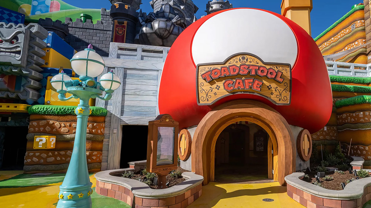 Toadstool Cafe draws inspiration from the aesthetic codes, designs and dining ideas of its predecessor Kinopio’s Cafe, which opened in 2021 at Universal Studios Japan in Osaka. A mushroom-themed restaurant serving fast food after an introduction by Chef Toad, who welcomes diners by preparing food in a virtual kitchen.