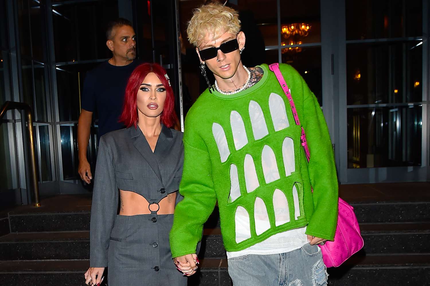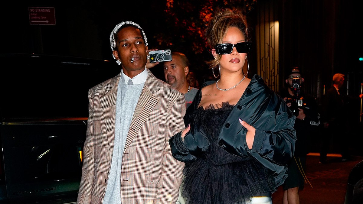 The rapper celebrated his 35th birthday with Rihanna at this New York restaurant, for which the Savage X Fenty founder wore a tulle top with a smart trouser and boot ensemble, while Rocky opted for a jeans and grey jumper look, paired with a beige checked blazer and a huge pink Bottega Veneta bag.