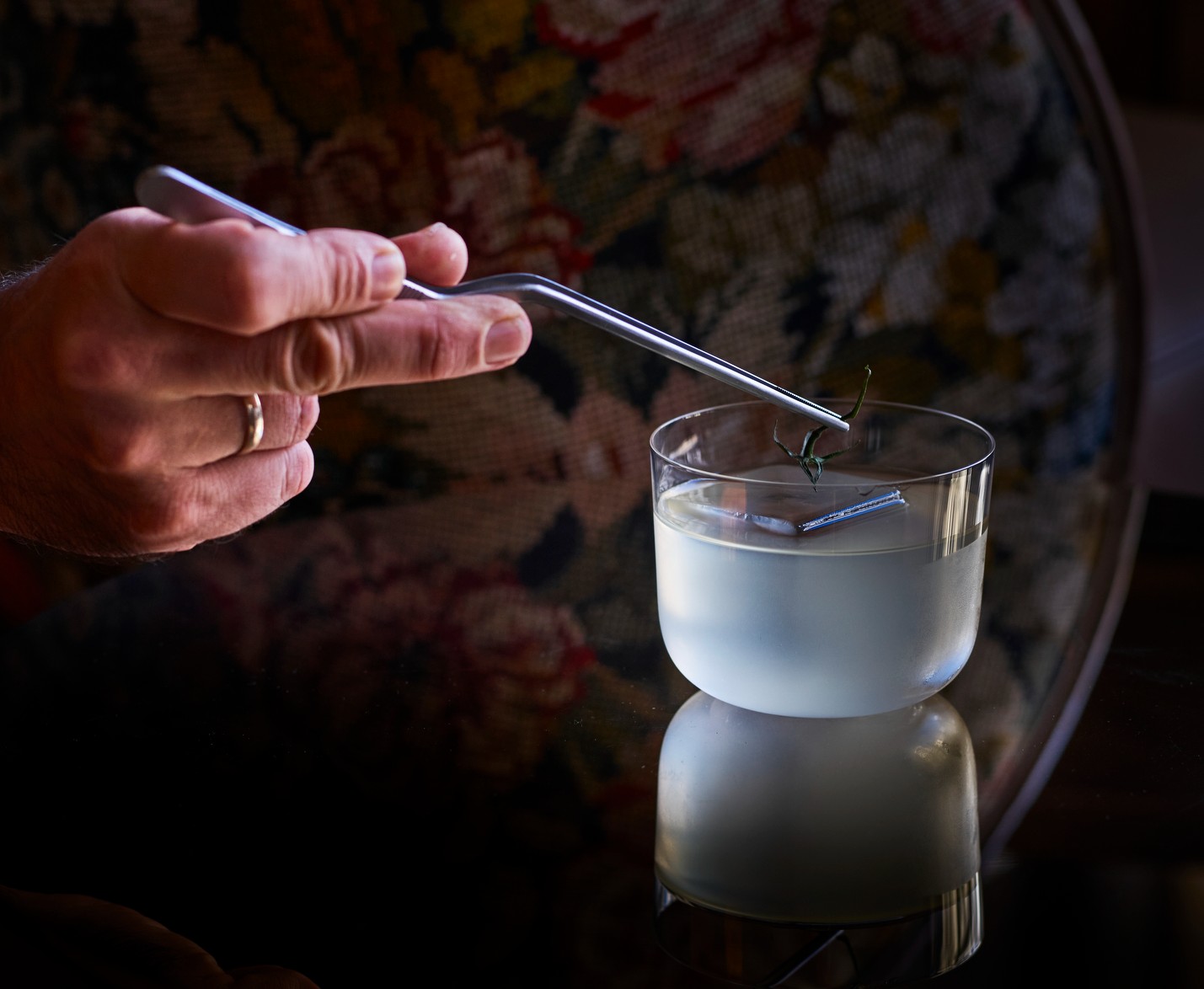 El cóctel contiene la mezcla floral y herbácea del destilado Seedlip Garden, además de agua cítrica de gazpacho.